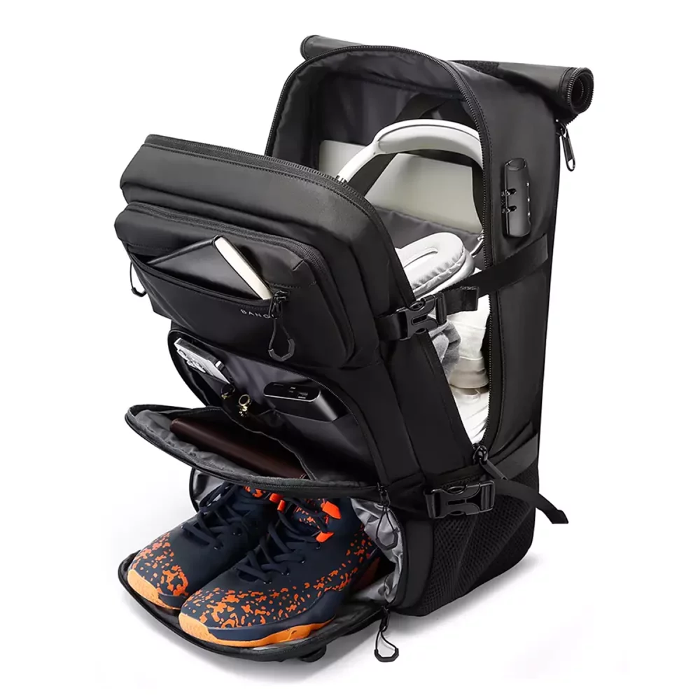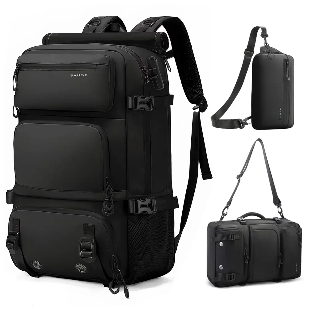 Opinie o Plecak Antykradzieżowy wodoodporny Bange 30L miejski podróżny 51x32x20 cm do pracy samolotu męski damski z zamkiem szyfrowym i odpinaną saszetką Czarny