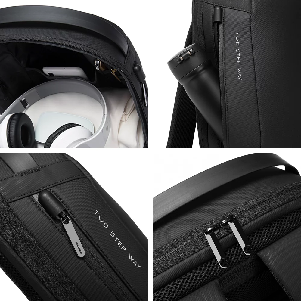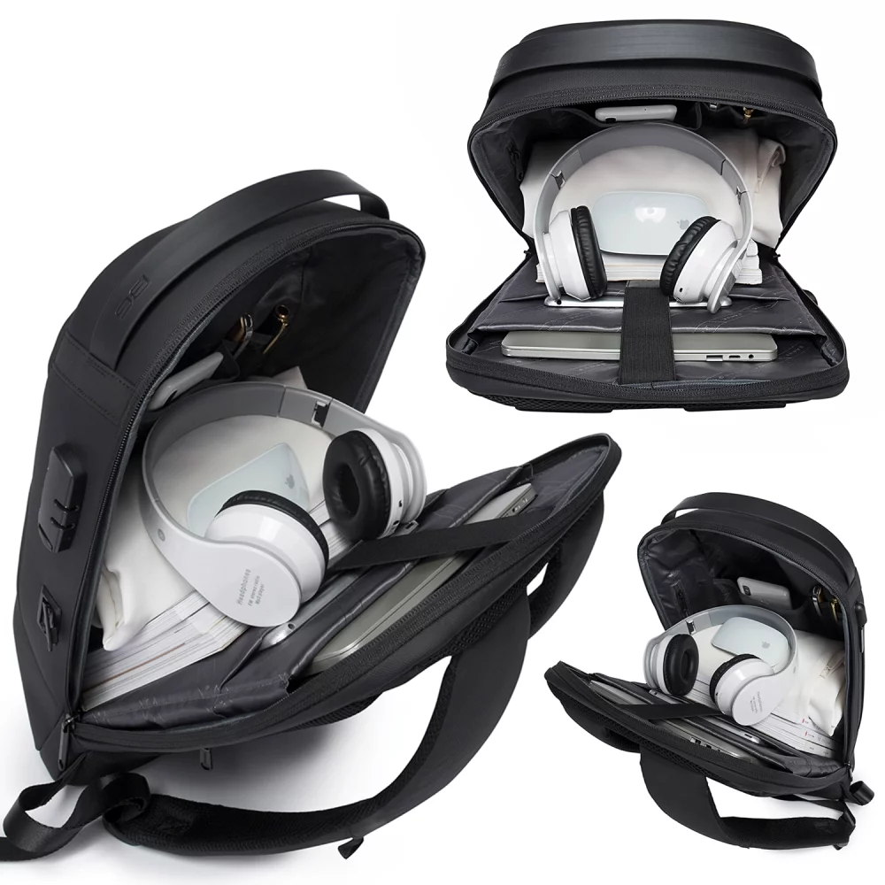 ✅ Główna komora plecaka - Zabezpieczona kłódką na szyfr. Posiada zabezpieczoną pasem, wyściełaną kieszeń na laptopa, kieszeń na tablet i kilka kieszonek na drobiazgi.
