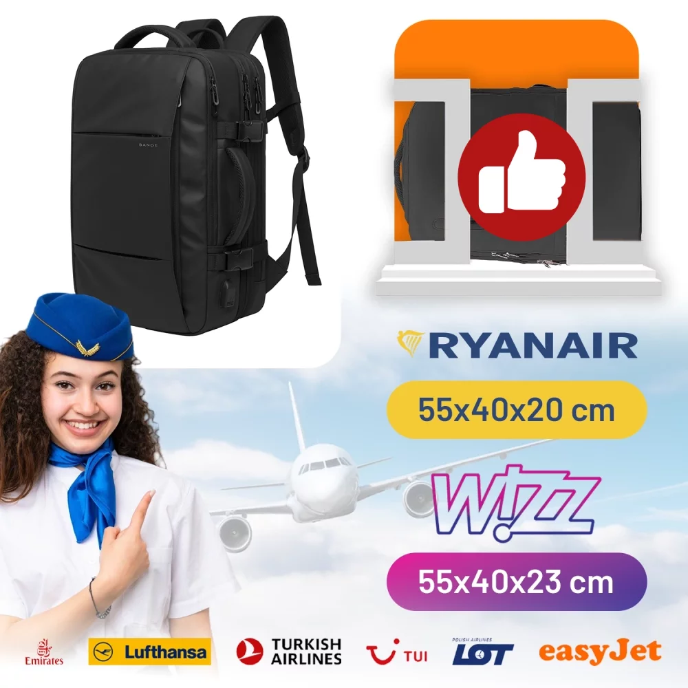 ▶️ Plecak mieści się w limitach bagażowych linii lotniczych, oferując jednocześnie wystarczająco dużo miejsca na najpotrzebniejsze rzeczy – od elektroniki po ubrania. Wykorzystaj bagaż jako torbę podręczną (bagaż płatny).