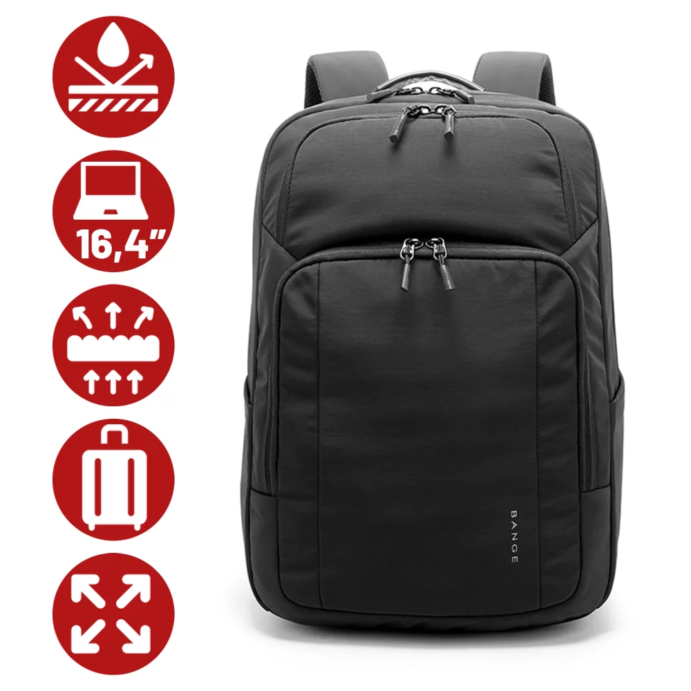 Plecak wodoodporny Bange 23L na laptopa 16.4" – pojemny i wygodny, odporny i oddychający, miejski i podróżny do pracy i samolotu, unisex – Czarny