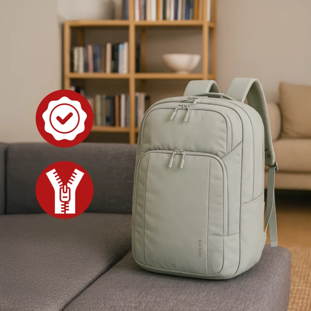 ✅ Nasz plecak Bange został wykonany z wyjątkowo trwałego materiału nylonowego powlekanego PVC, który zapewnia wysoką odporność na wodę i wilgoć.