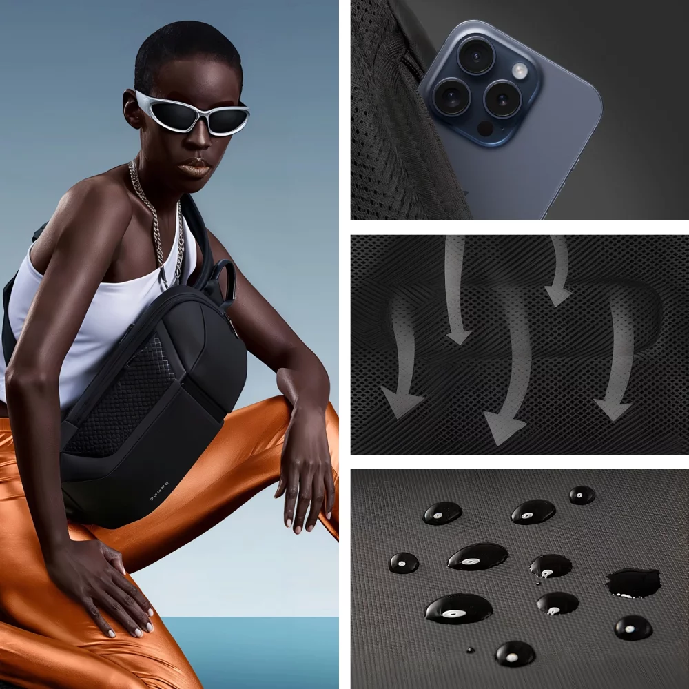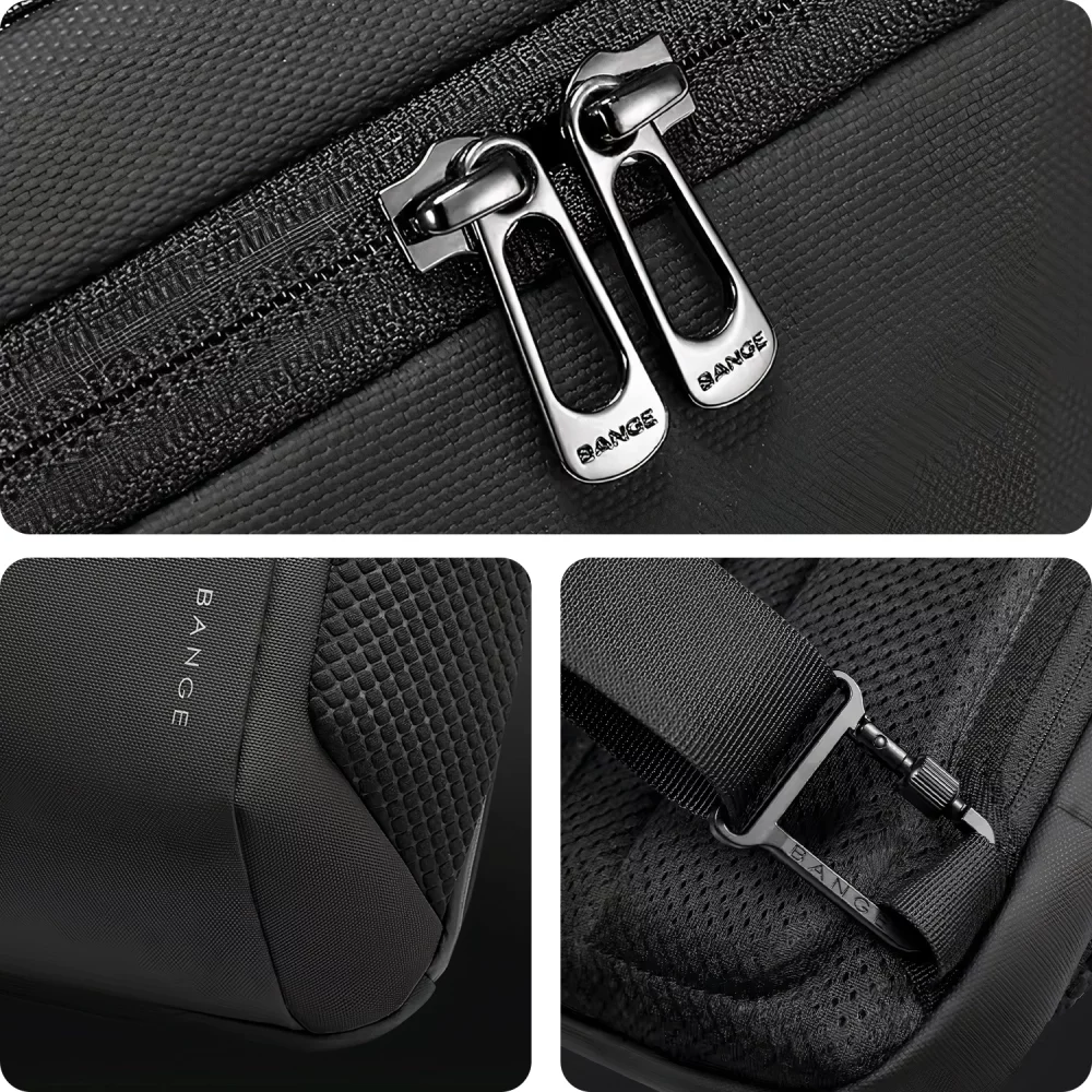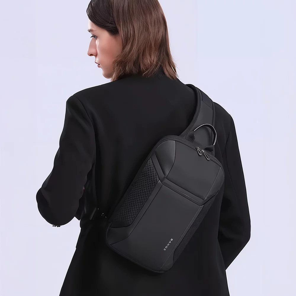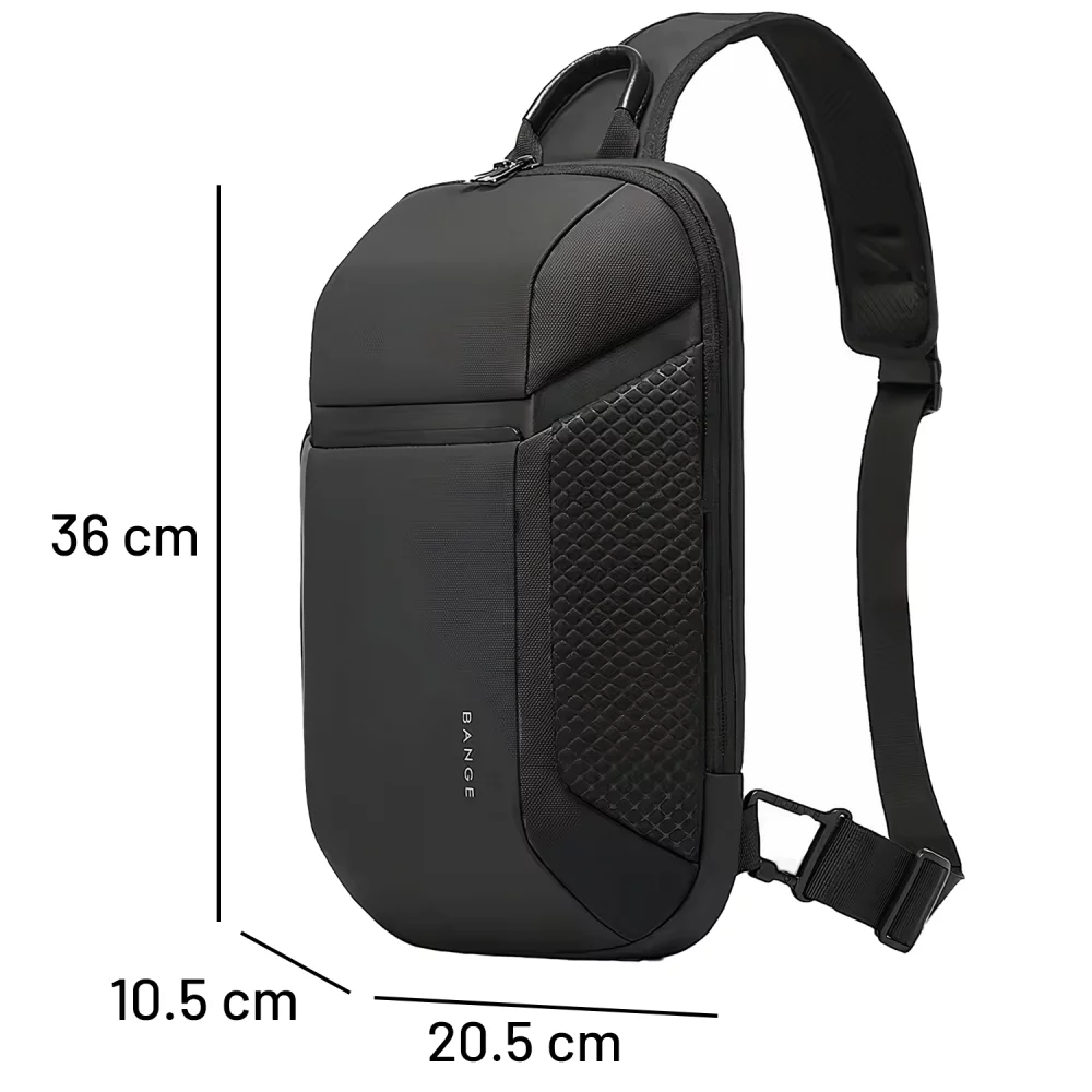 • Wodoodporny plecak Bange na jedno ramię, mieści tablet 11". Kompaktowy (36x20,5x10,5 cm), idealny do pracy, szkoły i podróży. Stylowy czarny design, unisex, z miejscem na akcesoria. Doskonały na co dzień i w podróży.