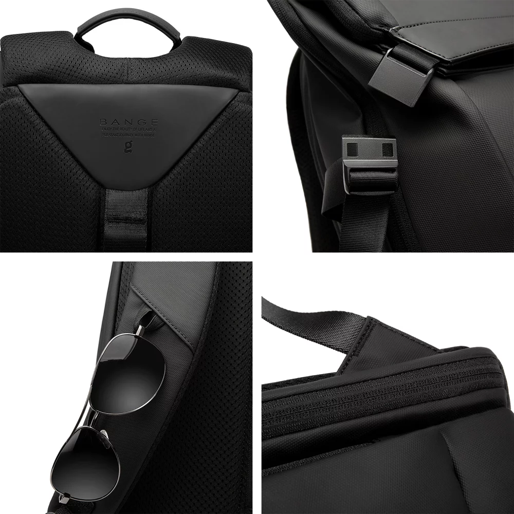 Plecak wodoodporny Bange na laptopa 15.6" miejski podróżny 44x30x17 cm do pracy samolotu męski damski Czarny