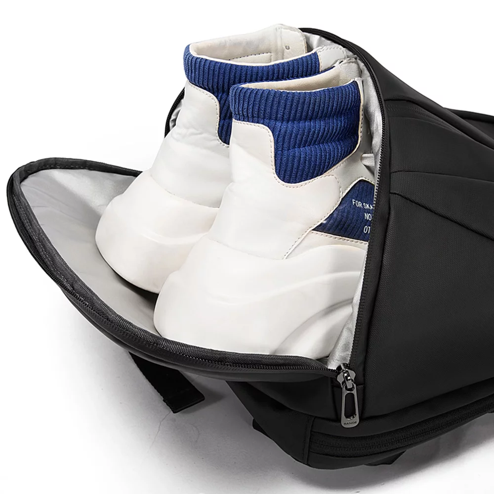 ✅ Plecak wyposażony jest w specjalną komorę na buty, co stanowi bardzo praktyczną funkcję, szczególnie dla osób, które często podróżują lub chodzą na siłownię. Ta oddzielna kieszeń pozwala na łatwe i wygodne przechowywanie butów, utrzymując je z dala od reszty zawartości plecaka, takiej jak ubrania czy elektronika.