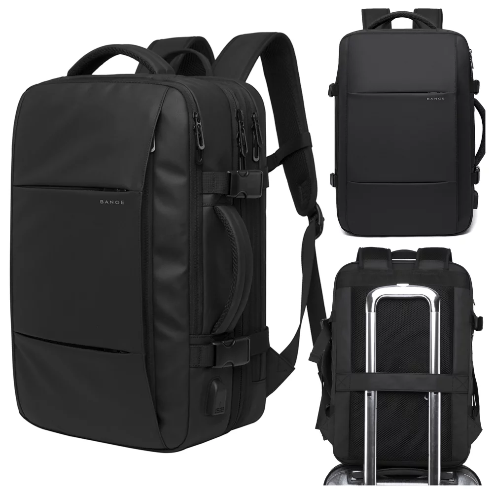 Opinie o Plecak wodoodporny Bange na laptopa 15.6" miejski podróżny 47x31x15-25 cm do pracy samolotu męski damski z portem USB Czarny