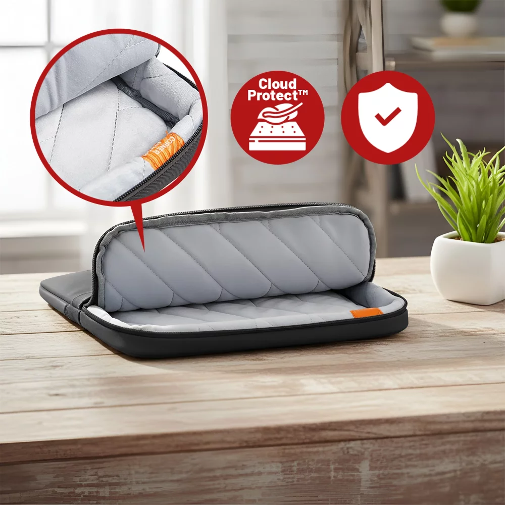 W torbie Bange zastosowaliśmy CloudProtect™ — miękką, delikatną mikrofibrę, która otula laptopa.